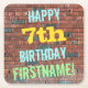 This fun birthday-themed coaster design features a message like "HAPPY 7th BIRTHDAY, FIRSTNAME!", where the name can be personalised. The background features a representation of a brick wall consisting of some reddish-brown coloured bricks. The customisable message text features colours like blue, yellow, and green, and it has an appearance inspired by that of painted graffiti. Coasters like these might be useful as practical decorations at a birthday party for somebody who is celebrating their seventh birthday. [~Z0000288]