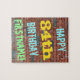 This fun birthday-themed puzzle design features a message like "HAPPY 84th BIRTHDAY, FIRSTNAME!", where the name can be personalised. The background features a representation of a brick wall consisting of some reddish-brown coloured bricks. The customisable message text features colours like blue, yellow, and green, and it has an appearance inspired by that of painted graffiti. A puzzle like this might be used as a fun way to send birthday wishes to somebody who is celebrating their eighty fourth birthday, and who perhaps really likes doing puzzles. [~Z0000285]