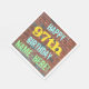 This fun birthday-themed paper napkin design features a message like "HAPPY 97th BIRTHDAY, NAME-HERE!", where the name can be personalised. The background features a representation of a brick wall consisting of some reddish-brown coloured bricks. The customisable message text features colours like blue, yellow, and green, and it has an appearance inspired by that of painted graffiti. Napkins like these could perhaps be used at a birthday party for somebody who is celebrating their ninety seventh birthday. [~Z0000271]