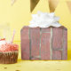 This wrapping paper features a dark red brick wall pattern for an urban look.