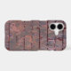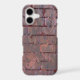 This is an interesting and unique case, featuring an image of an old violet grey brick wall. The wall has multiple images of faint coral pink valentine hearts in various places and positions, looking like graffiti. At the bottom in coral pink is your name or other customised text.