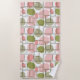 This beach towel has a geometric design of pink and green blobs with darker green rectangle outlines on top. Like the design but want a different colour? Message me.