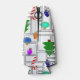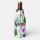 This bottle cooler has a geometric design of Christmas trees, candy canes, lights, and ornaments with grey rectangle outlines on top. Like the design but want a different colour? Message me.