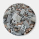 This magnet design features a photo of demolition rubble that contains bricks, concrete blocks, and other building wreckage debris.