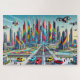Immerse yourself in the vibrant world of Bricktopia: Futuristic Cityscape with this captivating jigsaw puzzle. Featuring a stunning digital painting of a futuristic city built entirely from colourful building bricks, this design brings a playful yet sophisticated vision of tomorrow to life. Admire the sleek, geometric towers in bold hues of red, blue, yellow, green, and purple, along with intricate brick-built vehicles and bustling streets. Perfect for puzzle enthusiasts and design lovers alike.
