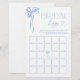 Transform the traditional bridal shower into an engaging and stylish affair with this beautifully designed Bridal Bingo game card. Infused with a touch of classic charm, the elegant blue bow motif brings an air of refinement to the celebration, ensuring every detail aligns with a sophisticated aesthetic. Guests will enjoy the interactive experience of predicting the bride-to-be’s gifts, adding an extra layer of excitement and connection to the gift-opening moment.