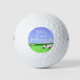 This golf-themed bridal shower golf balls is crafted with the bride-to-be at the heart of its design. It features a heart-shaped putting green and a flag pin fluttering in the breeze, emblazoned with the words "Bride to Be." The golf cart is festively adorned with champagne, gifts, a tiara, and an intricately illustrated bridal shower cake. A bridal veil elegantly drapes from the golf bag, adding a charming touch.