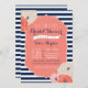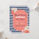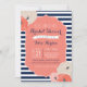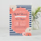 Bold navy blue and white stripe, striking coral frame and whimsical coral flowers complete the look. Use this design for a bridal shower, baby shower, birthday or anniversary! Possibilities are endless!