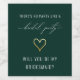 There's No Party Like A Bridal Party, Bridesmaid proposal bottle label. Elegant typography design in white with golden heart accent and calligraphy graphic on emerald green background.