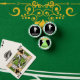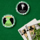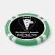 Fun bridal party poker chips with a black tie tuxedo on one side and a sage green bridesmaid gown on the other. Personalise with the bride and groom's names for a wedding party poker game. Personalised playing cards and chips also make a fun bridal party gift.