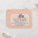 Fun modern ticket style blush pale coral pink glitter iridescent Bridal Shower invitations made from a top quality photograph of golden glitter with full colour iridescence and twinkling sparkle lights. Personalise this stylish layout easily using the template fields provided. The typography style text reads, "The future Mrs." which is in a script calligraphy hand lettered font as is the bride's name. It's simplicity is trendy, classy and yet timeless and classic. This is a pretty, elegant, twinkling glam party theme is so easy to pull together. WE have a full range of wedding invitation sets and reception, shower and party decor to match. Photo licensed from Cassie Clayschulte Photography and used by permission.