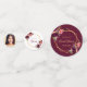 A trendy bohemian boho style for a bridal shower. Decorated with watercolored roses in burgundy and pink. Elegant white or burgundy background. A faux gold geometric frame. With the text: Bridal Shower or Bride written with a hand lettered style script. Personalise and add a photo to two of the chips (small front and medium back) Template for the Bride to be's name. Burgundy or golden coloured letters.