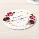 Bridal shower burgundy flowers geometric gold round paper coaster