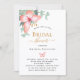 A chic white background. Decorated with a rose gold and blush pink butterfly, green watercolored eucalyptus leaves, sprigs, greenery and a faux gold sprig. Personalise and add the name of the bride to be and party details. Black and golden coloured letters.