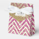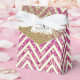 Bright magenta hot pink glitter photograph background NOTE: THIS IS A FLAT PRINTED DESIGN - THERE ARE NO JEWELS OR REAL GLITTER USED. Beautiful, elegant, classy glam, bridal shower favour boxes in pink, soft white and gold "glitter" look subtle outline of the trendy chevron stripes pattern. On the top of the stylish box is a shimmering, glittery sheer half tone dot pattern with graphically designed jewels like diamonds. A bracket style frame is outlined in "diamonds" and has script calligraphy typography word art that says, "The Future Mrs..." and your bride's name after her marriage is added in the template field provided. The background colour can be changed out easily customised using the background colour tool. Adds a fun touch to your spring or summer bridal shower party, sophisticated celebration or special wedding event. Glitter photograph from Cassie Clayshchulte Photography used by license.