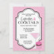 Invite the guests for a bridal shower in style with this modern and fun Cupcakes and Cocktails bridal shower invitation. This pink and black invitation features a pink cocktail and cupcake and a pink polka dot background. Some elements ©JD Digi Designs