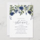 Bridal Shower Dark Blue Wildflower Greenery Invitation