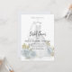 This design features a bridal shower invitation with a blue floral, watercolor flowers design, with elegant blue style, with elegant calligraphy script and classic wedding dress gown