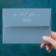 These elegant envelopes feature the words "Bridal Shower" in white over a dusty blue background. The envelope opens to reveal a watercolor luxury hotel in shades of blue. Use the template fields to add your custom return address. To see the matching suite visit www.zazzle.com/dotellabelle