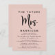 Budget-friendly modern "The Future Mrs" blush pink bridal shower invitation with "Mrs" written in a large elegant script.