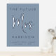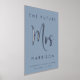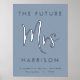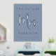 Chic "The Future Mrs" dusty blue welcome poster sign for your bridal shower with real gold foil and "Mrs" written in a large elegant script. Personalise with your future married name, first name and shower date.