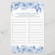 Bridal Shower Game answer sheet, personalised with the name of the bride-to-be or the bride and groom. Blue floral design with watercolor flower blooms and foliage. Perfect to use with any question or guessing games at your wedding or bridal shower with numbered lines for your guests to add up to 20 answers.