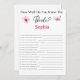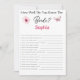 Featuring a beautiful design with a white and pink flower on the left and a white and purple butterfly on the right, the top of the game is sure to catch the eye of every guest. The bride-to-be's name is elegantly displayed in pretty pink text underneath the question "How well do you know the bride?"