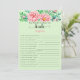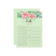At the top of the game, the bride-to-be's name is listed under the question "How Well Do You Know The Bride?", written in a pretty pink colour that matches the flowers. The rest of the game is designed in a vibrant shade of green with black text, making it easy to read and understand. With 15 customisable questions, you can tailor the game to the bride's interests and personality, making it a unique and personalised addition to her special day.