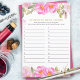 Bridal Shower Game Pink Floral Answer Card