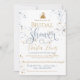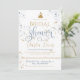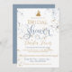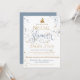 Bridal shower Invitation with lots of gold and dusty blue glitter around.