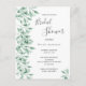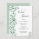 A trendy Bridal Shower invitation in white and green. A chic white background on the front. Decorated with botanical greenery, sprigs and foliage. Modern large handlettered script, typography with the text: Bridal Shower. Templates for the bride's name and party details. Dark grey text.