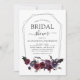 Halloween October 31st Autumn Fall Dark Watercolor Dark Purple Wedding Bridal Shower Invitations on Black background - includes haunting and scary elegant script typography with modern Flowers and Bat Wings for the special Creepy Bride to Be day celebration.