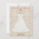 Elegant Bridal Shower Invitation done in a soft beige and pink floral background, with graphics of a white wedding gown on a golden stand. Customise all the text areas on the back and front of this great card to suit your needs. Change font style, size, and colours too if you want.