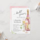 Bridal shower invitation in a delicate, elegant, minimalist style with a charming watercolor illustration of a wine bottle and wine glasses.