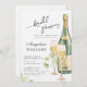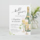 Bridal shower invitation in a delicate, elegant, minimalist style with a charming watercolor illustration of a wine bottle and wine glasses.