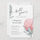 The bridal shower invitation is designed in an elegant minimalist style in pastel colours with a delicate flower.