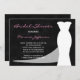 This beautiful bridal shower invitation features a white bridal gown with a semi-transparent train on a black chalkboard background. This bridal shower invitation is perfect for use with any colour scheme as you can change the pink wording to the colour of your choice by clicking on customise it and then click on the line you are interested in changing the colour of and then click colour and select your colour. A great bridal shower invitation. Copyright henishouseofpaper
