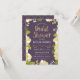 This modern and pretty bridal shower invitation features an illustrated floral border and the words "Bridal Shower" in gold. The background is a purple colour, but can be customised to any colour you choose. The back of the invite includes a gold quatrefoil pattern with a matching purple background that can also be swapped out. The text is customisable for your special pre-wedding celebration event.