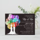 A contemporary invitation for the future Brides. Black elegant background with vibrant colours of the rainbow. Two wedding dresses to represent each of the brides.