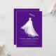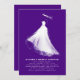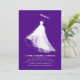 These bridal shower invitations are a true celebration of the bride's feelings and the romance of her upcoming wedding. The design's elegance is in its simplicity, showcasing a gorgeous silhouette of the bride in her breathtaking wedding gown. This visual element conjures a romantic and whimsical ambiance, stirring emotions of love and nostalgic reminiscence. The artistic illustration, marked by its bold strokes, merges flawlessly into a deep purple backdrop, enriching the design's allure. This straightforward yet impactful approach beautifully articulates the bride's radiance and the wedding's charm, ensuring the invitations leave an enduring mark on this memorable occasion.