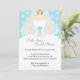 Bridal Shower Invitations with Bride & gift in blue and polka dots