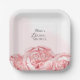Bridal Shower Party Plates features adorable watercolor peonies, soft pink flowers and emerald leaves.