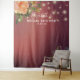 Bridal Shower / Wedding Shower Photo Booth Backdrop Templates - Elegant Script, Watercolor Floral Peach White Roses and String Lights on Burgundy Red Damask Background.