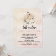 A rose gold and blush pink gradient background, decorated with a cream coloured pumpkin and flowers. Personalise and add the name and party details. Text: fall in love