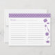 Bridal Shower Recipe Card - Purple