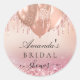 Bridal shower rose gold blush glitter name classic round sticker