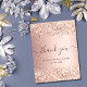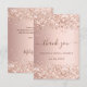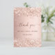 A thank you card for a Bridal Shower. A rose gold background. With faux, sparkles. On front large hand lettered script and the text: Thank You, your text, title and a date.