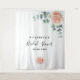 Elegant, classic, modern style bridal shower banner, tapestry. Decorated with rose gold watercolored roses, florals flowers and eucalyptus greenery. With the text: Bridal Shower written with a modern black coloured hand lettered style script. Personalise and add the bride's name and a date.