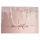 A gift bag for a girly and glamourous Bridal Shower, bachelorette party. A faux rose gold background with elegant pink and rose gold glitter drips, paint dripping look. Personalise and add a name and monogram letter. The name is written in burgundy with a modern hand lettered style script with swashes. To keep the swashes only delete the sample name, leave the spaces or emoji's in front and after the name.