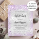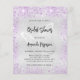 A modern, elegant bridal shower. Faux silver looking background decorated with purple faux sparkles and a large butterfly. Personalise and add a name and party details. Black coloured letters.